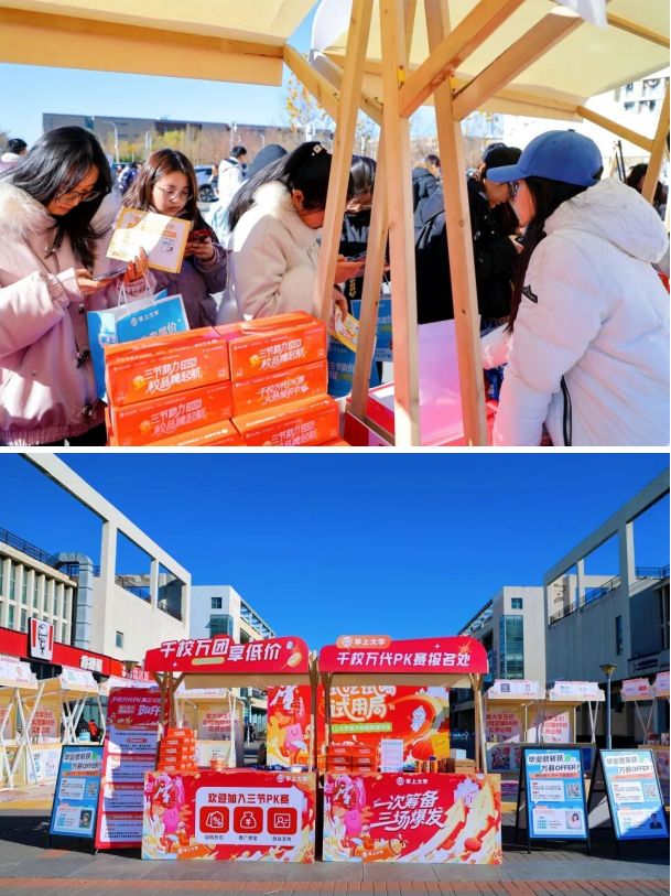 掌上大学邀请品牌商家加入这场贯穿三节的营销征程,与掌上大学共同打造“品牌+销量+私域”三位一体的全域增长方案。抢占黄金席位,商家可以从年货节切入,就能完整享受三节联动的复利增长。早一步筹备,早一步领跑!开启一段与年轻消费者同频共振的美好旅程,让品牌在校园绽放独特光彩!