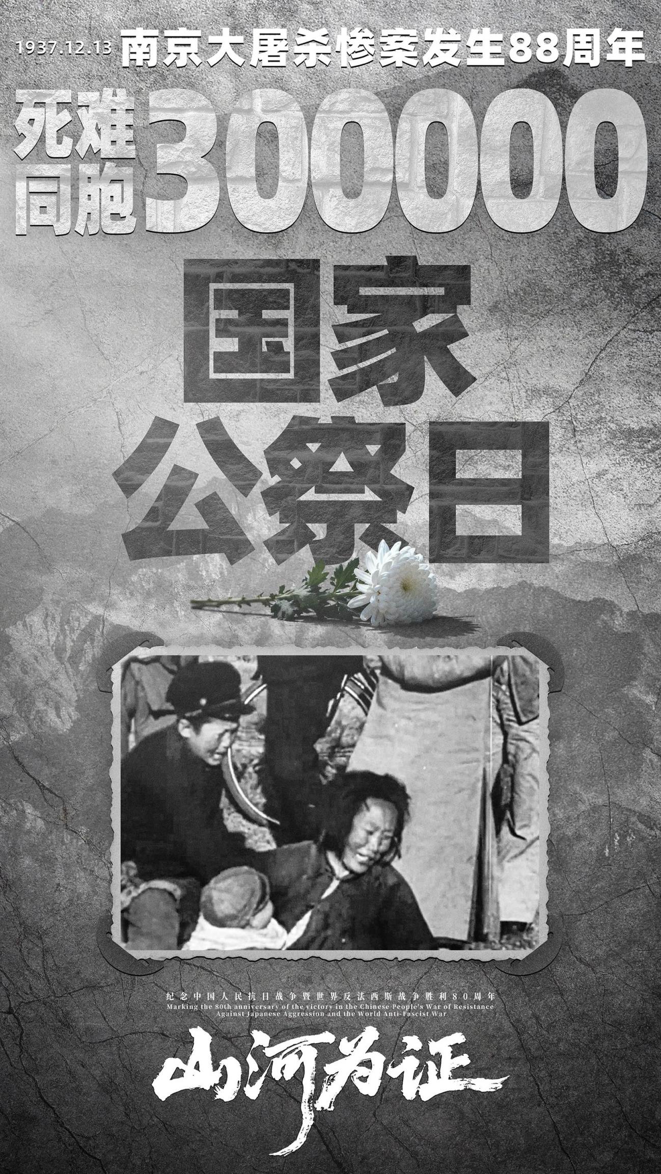 纪录电影《山河为证》是纪念中国人民抗日战争暨世界反法西斯战争胜利80周年的重要影视作品。影片秉承严肃的史学态度与高度的艺术责任,既注重历史逻辑的严谨性,也强调民族精神的传承性。88年前,侵华日军制造的南京大屠杀惨案不可忘记!在第十二个国家公祭日之际,对于这段历史我们从记忆到共识,从共识到行动,亿万中华儿女共同守护这份“不能忘却的记忆”。据悉,《山河为证》将持续开展相关主题活动,共同见证民族历史,共同传承民族精神。