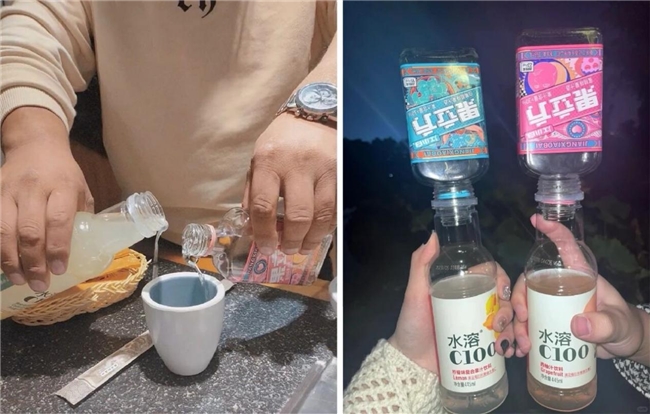 大学生宿舍微醺、社团聚餐混饮,职场新人发现,“左手蜜雪冰城,右手果立方,橙子负责清醒,蜜桃负责上头,这对下班搭子专治各种不快乐。”小镇青年,在有限的预算内获得最大化的微醺体感。