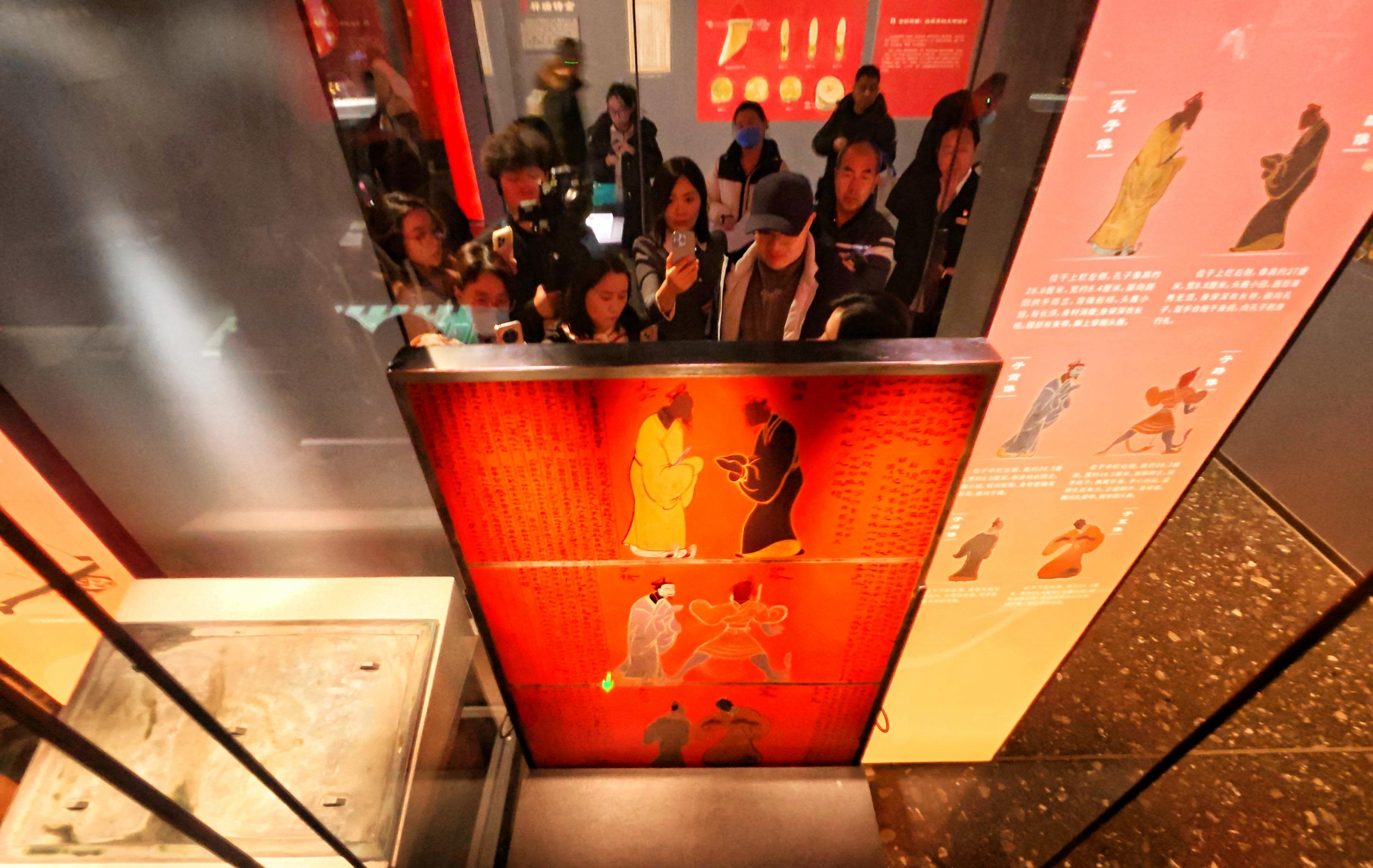 “此次大家看到的是仿制品,它的原件仍在进行修复中。”范丽君解释,孔子镜屏属于有机质文物,其保护难度原本较高,加之体积庞大、工艺繁复、图像价值突出、纹饰精妙且铭文丰富,致使保护技术手段远超普通漆木文物。