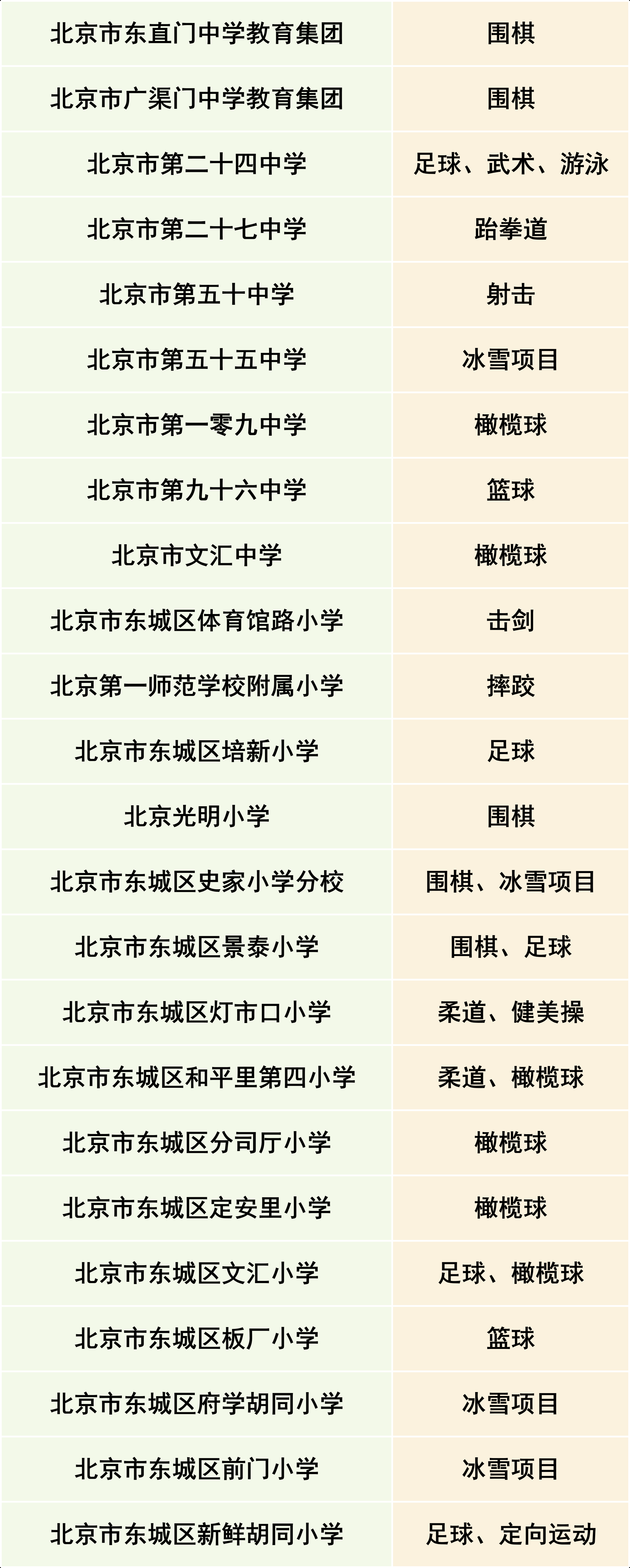 值得一提的是,在延续优势项目的同时,东城区首次将射击、摔跤、击剑、橄榄球、冰雪项目、围棋等项目纳入传统校布局,展现出区域体教融合深度推进,学校体育特色向多元化、高质量发展的蓬勃态势。