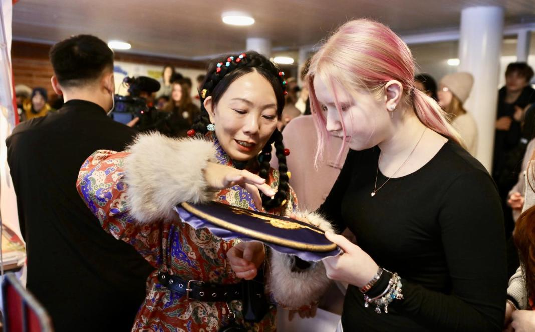 本次“欢乐春节”还走进赫尔辛基校园,不仅带来京剧、民乐、武术等精彩表演展示,还为学生们带来非遗技艺沉浸式体验。