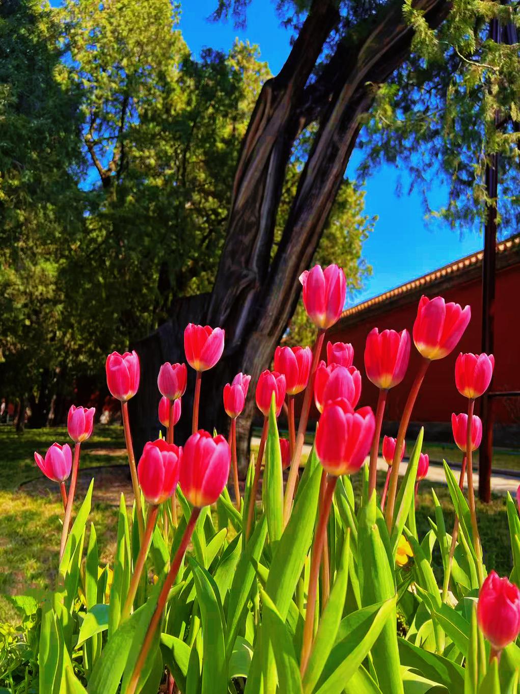 郁金香原产于天山山脉、中亚西亚以及地中海沿岸等地区,经由古老的丝绸之路引入欧洲大陆。本届文化节就是以郁金香的丝路传播历程为叙事主线,结合公园古树、红墙、古建的独特底蕴,精心打造7大室外主题景区。全园郁金香栽植面积达4000平方米,栽种种球18万个、种苗1.5万株,汇聚100余个郁金香品种,搭配风信子、洋水仙等球根花卉,勾勒出层次丰富、色彩绚烂的春日花海。记者了解到,园内郁金香将于4月上旬迎来最佳观赏期。