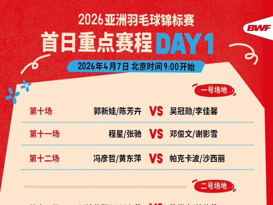 2026年亚洲羽毛球锦标赛今日开打,首日赛程公布