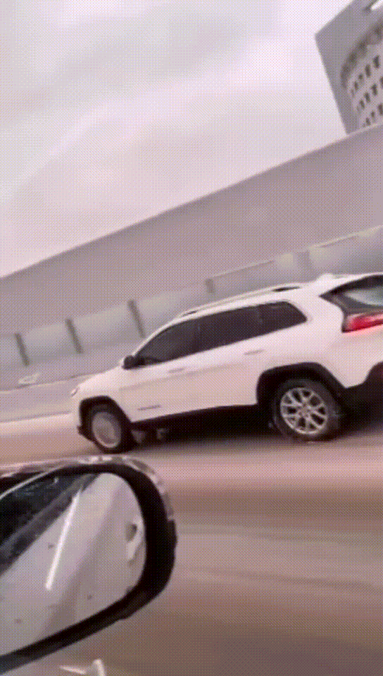 危险驾驶,请勿模仿!白色吉普车后轮:我也不造咋回事啊我也不敢动啊